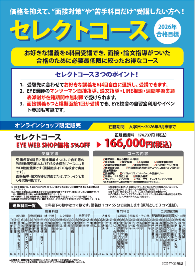 2026年合格目標 セレクトコース