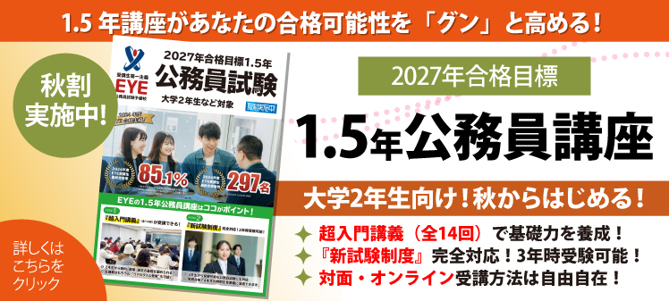 この度、EYEでは2027年合格を目指す大学2年生向けに、新たに「1.5年公務員講座」の販売を開始しました!