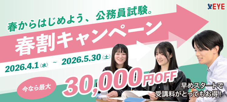 ※大学によっては「大学別オリジナル公務員講座」のキャンペーンをご案内していますので、EYE各校までお問い合わせください。